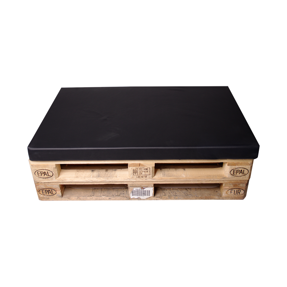 Diese moderne Palettenlounge hat keine Rückenlehne und eignet sich somit gut als Sitzgelegenheit in einem offenen Raum, da sie von beiden Seiten Platz bietet.