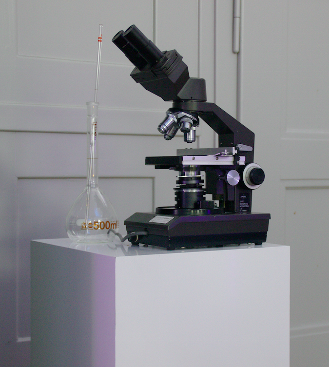 Ein Mikroskop als Dekorationsobjekt für Events zum Thema Pharma /Chemie / Labor / Medizin.